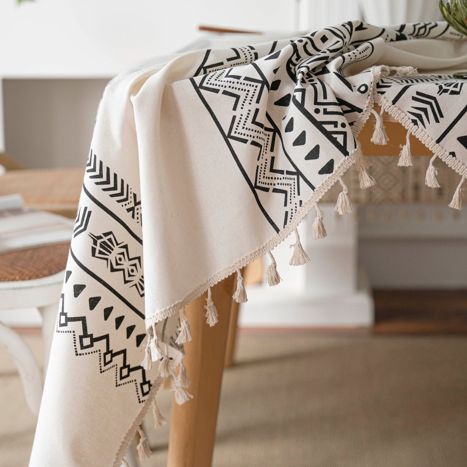 Add a modern yet elegant touch to your dining or coffee table with this geometric tassel tablecloth. Designed in a stylish black-and-beige crown geometric pattern, it blends American-style aesthetics with everyday practicality.